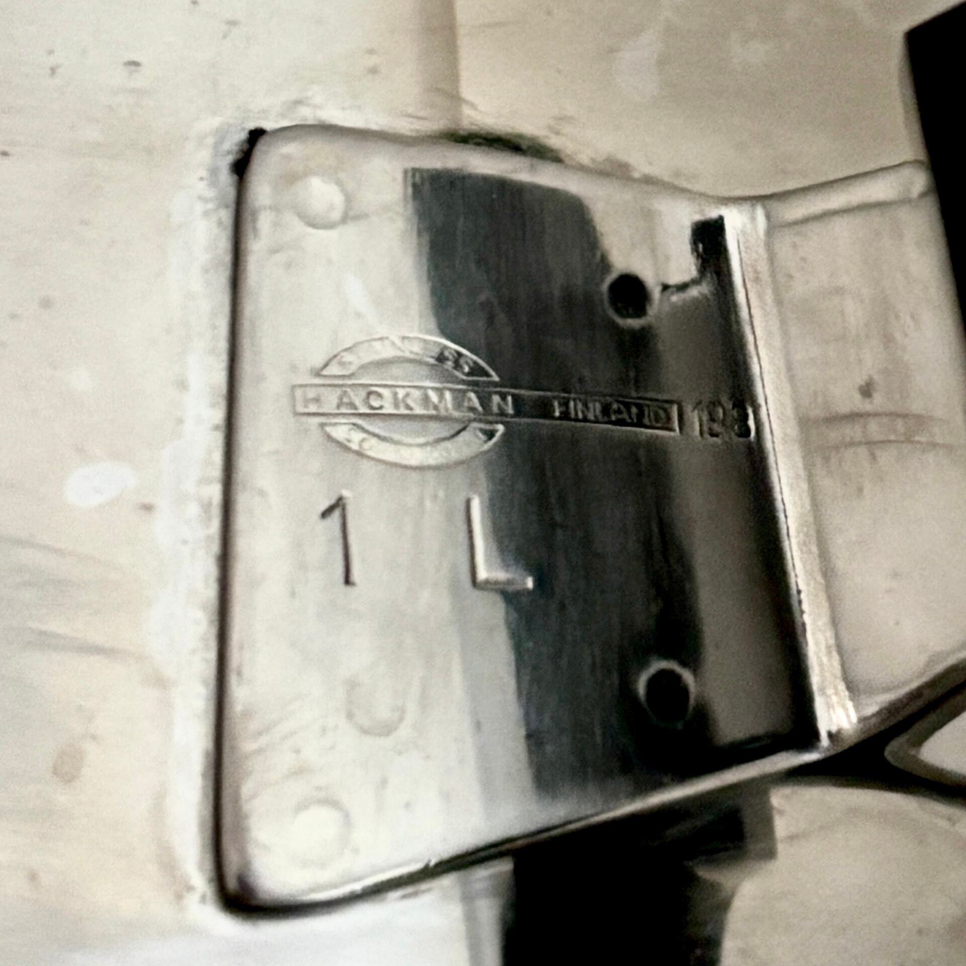 1960年代後半から1970年代に製造されたHACKMANのステンレスケトル1.0リットルサイズです。
