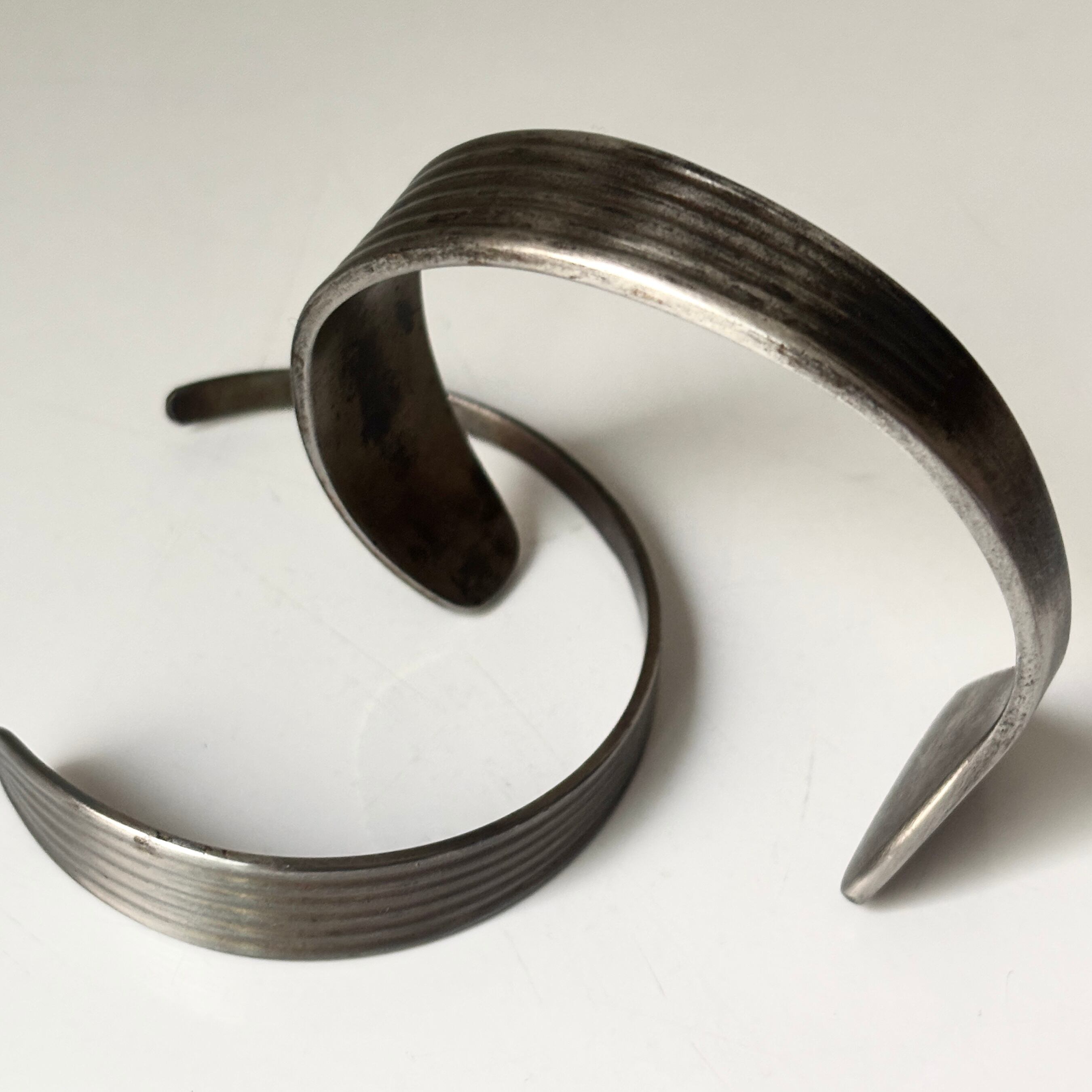 そんなシンプルなカトラリーを日本の金属工場にお願いして、ダメージ加工も施しオリジナルバングルに仕上げてもらいました。