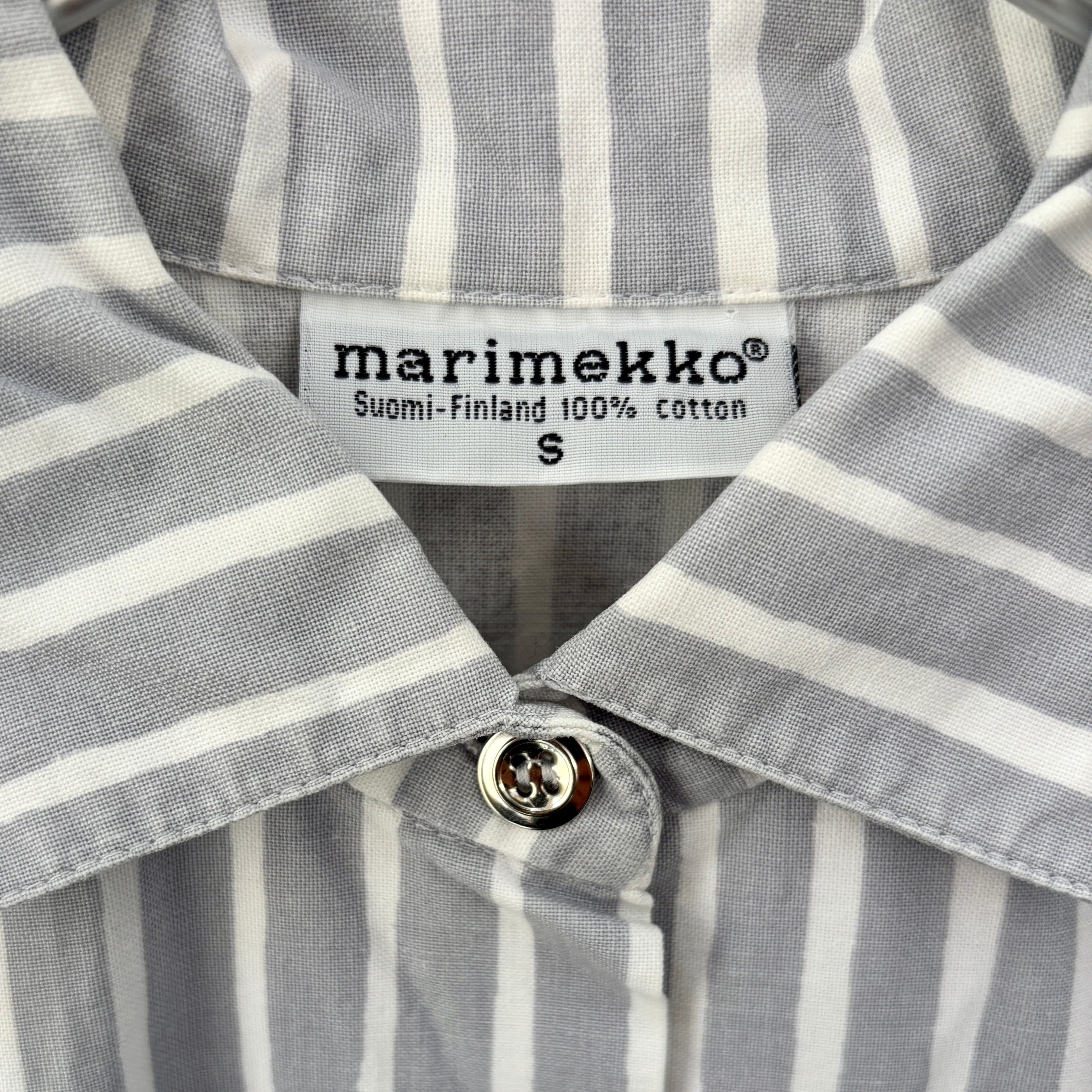 marimekko / JOKAPOIKAストライプシャツ Sサイズ / ライトグレー×ホワイト