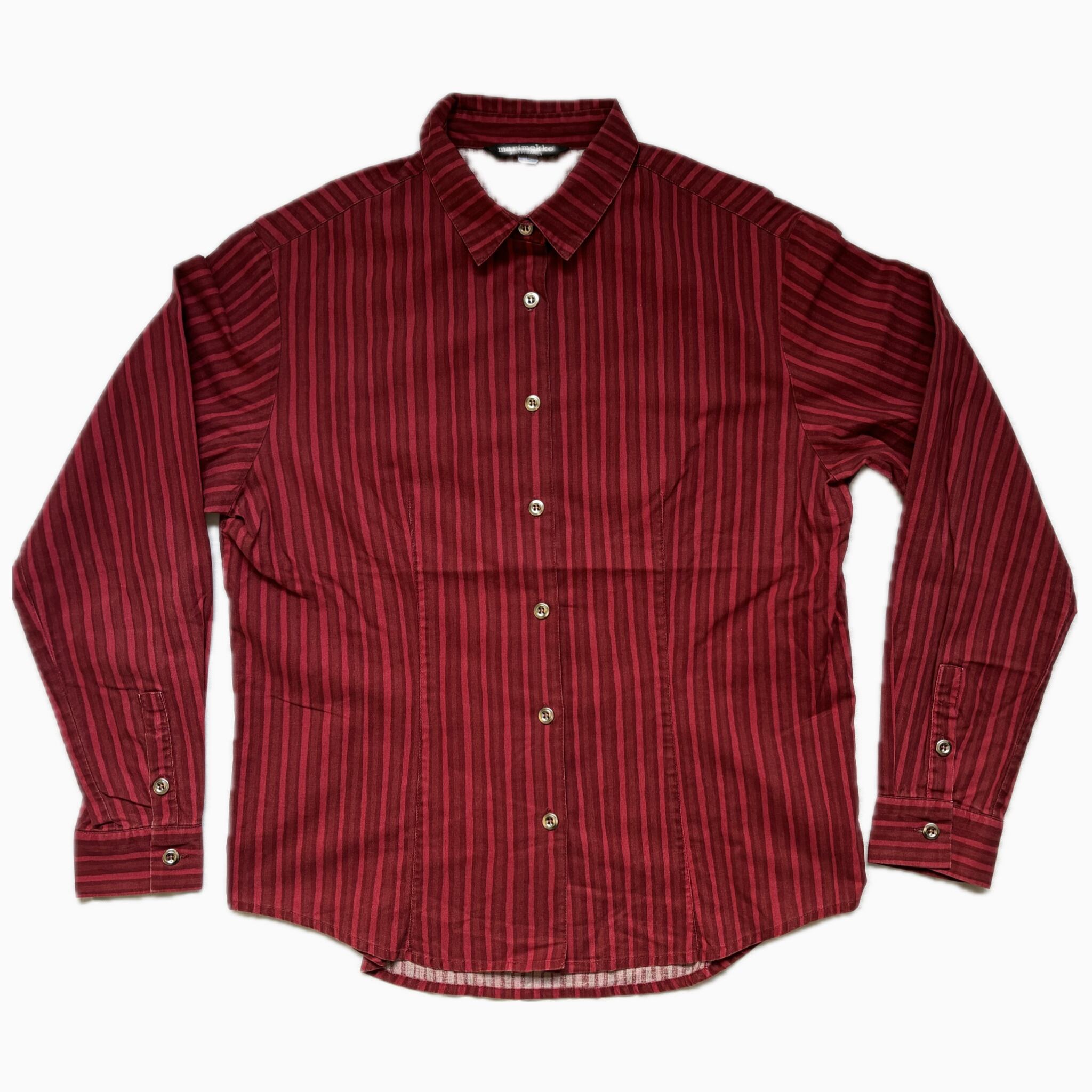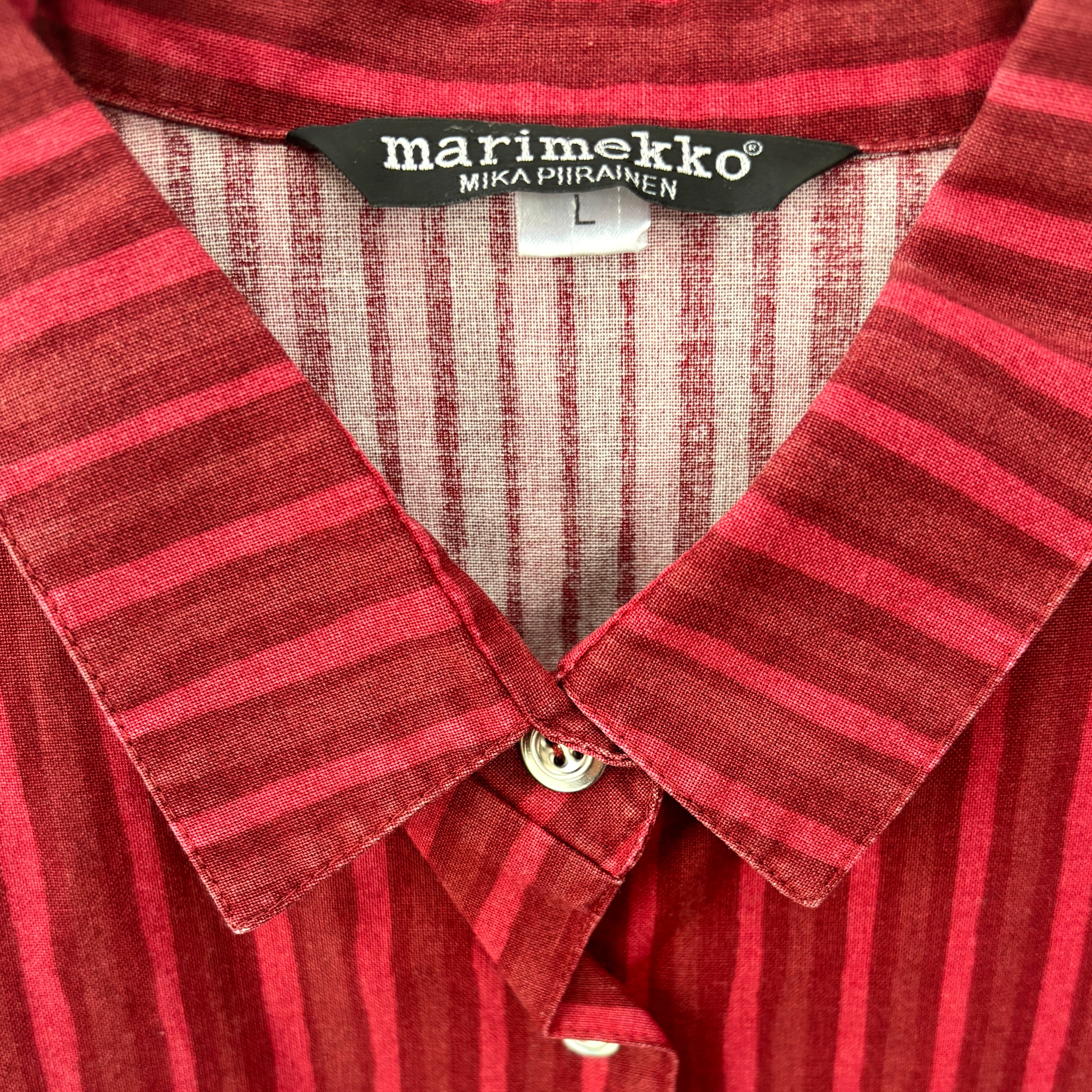 marimekko / JOKAPOIKAストライプシャツ レディースLサイズ / ワインレッド系