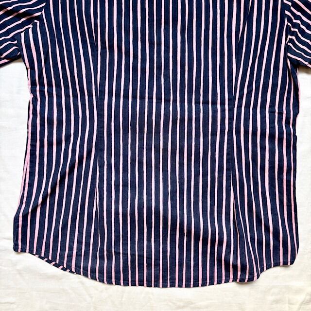 marimekko / JOKAPOIKAストライプシャツ Lサイズ / ネイビー×ピンク